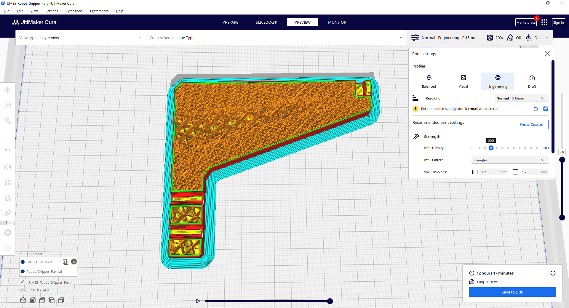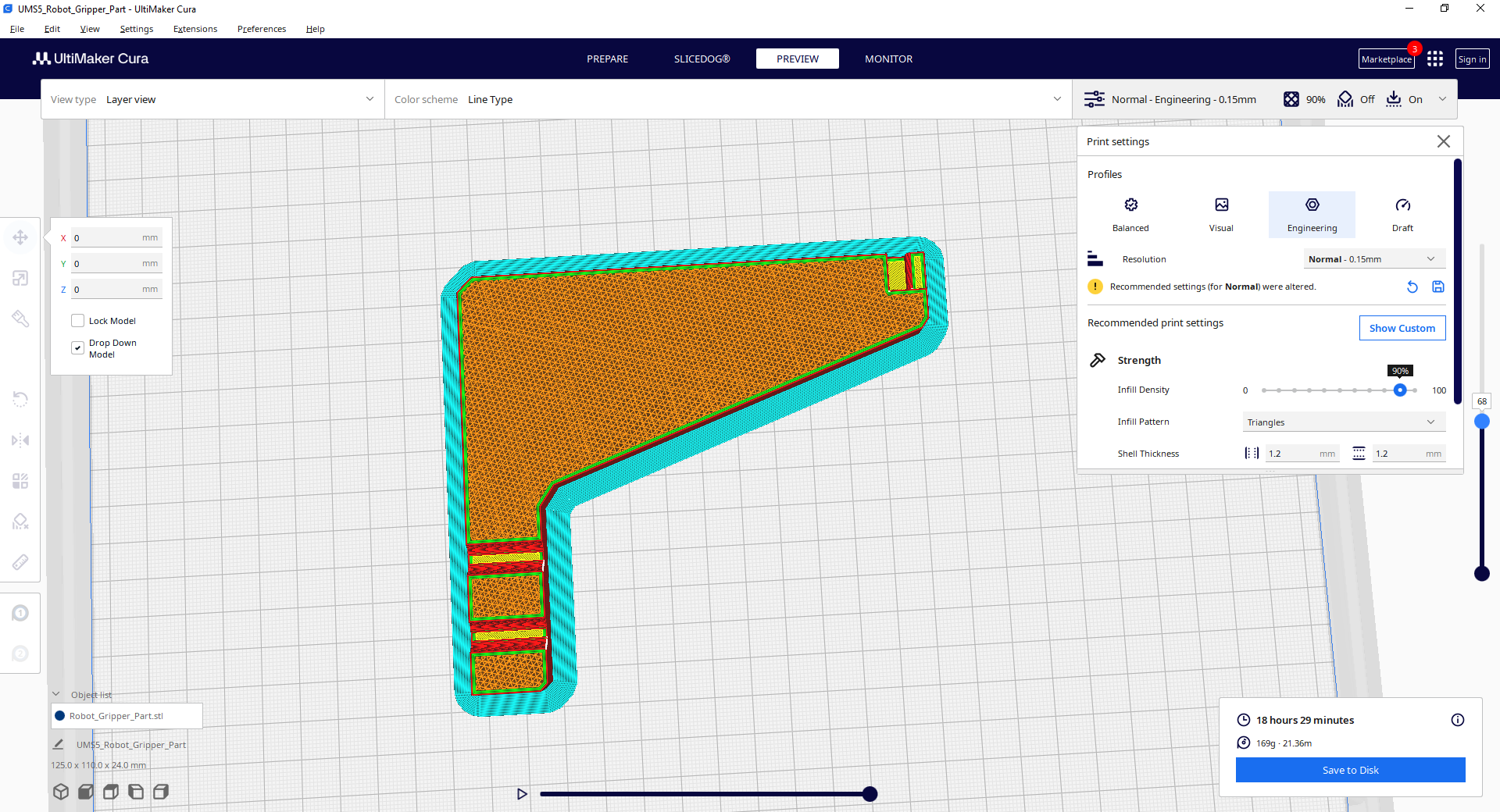 Optimization Progress – Slicedog begins reducing printing time and material. Each intermediate result is strength-validated, and if you let the optimization run to completion, you achieve the maximum savings.